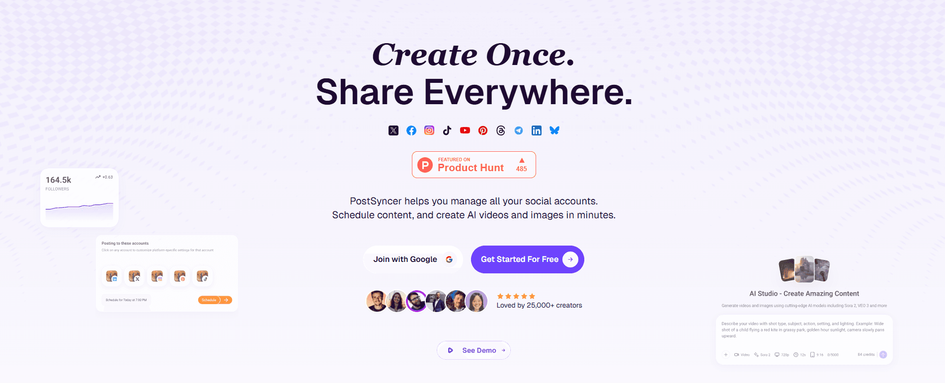 PostSyncer’s headline is pure leverage. It speaks directly to creator fatigue by framing content as an asset you multiply, not something you constantly remake. |